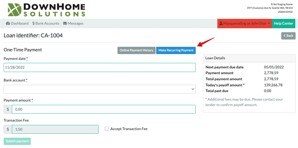 On the next screen, choose the “Make Recurring Payment” option. (If your lender has not enabled recurring payments, this button will not appear.)