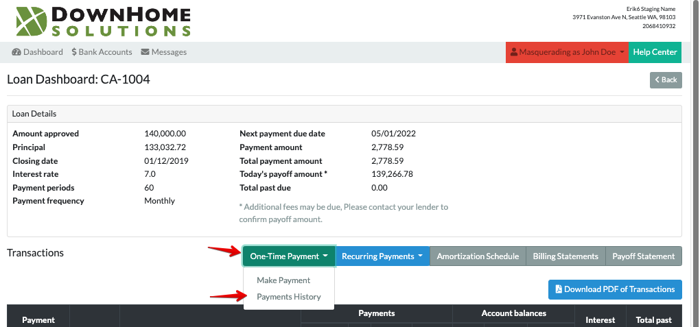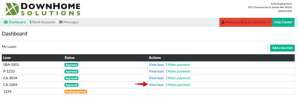 To see the status of your online payments, click "View Loan" from the Dashboard.