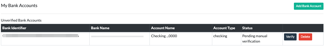 You will now see your bank account listed as Verified.